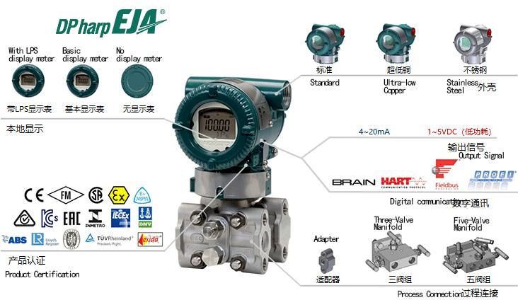 The EJA430E High-Performance Pressure Transmitter adopts single-crystal silicon resonant sensor technology and is suitable for measuring the pressure of liquids, gases, or vapors. The EJA430E converts the measured pressure into a 4–20mA DC current signal for output, and features functions such as fast response, remote setting and monitoring, and self-diagnosis.