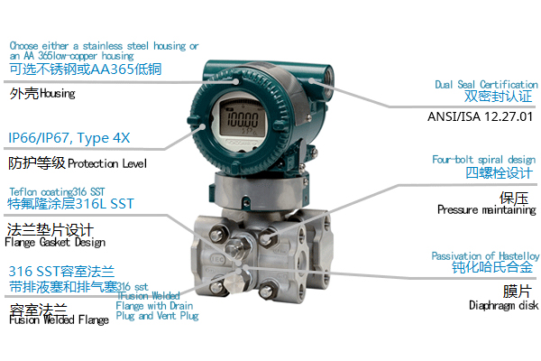 The EJX430A high-performance pressure transmitter adopts monocrystalline silicon resonant sensor technology and is suitable for measuring the pressure of liquids, gases, or vapors. The EJX430A converts the measured pressure into a 4–20 mA DC current signal for output, and features functions such as fast response, remote setting and monitoring, and self-diagnosis.