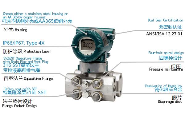 The EJX440A high-performance pressure transmitter adopts monocrystalline silicon resonant sensor technology and is suitable for measuring the pressure of liquids, gases, or vapors. The EJX440A converts the measured differential pressure into a 4–20 mA DC current signal for output, and features functions such as fast response, remote setting, and self-diagnosis.